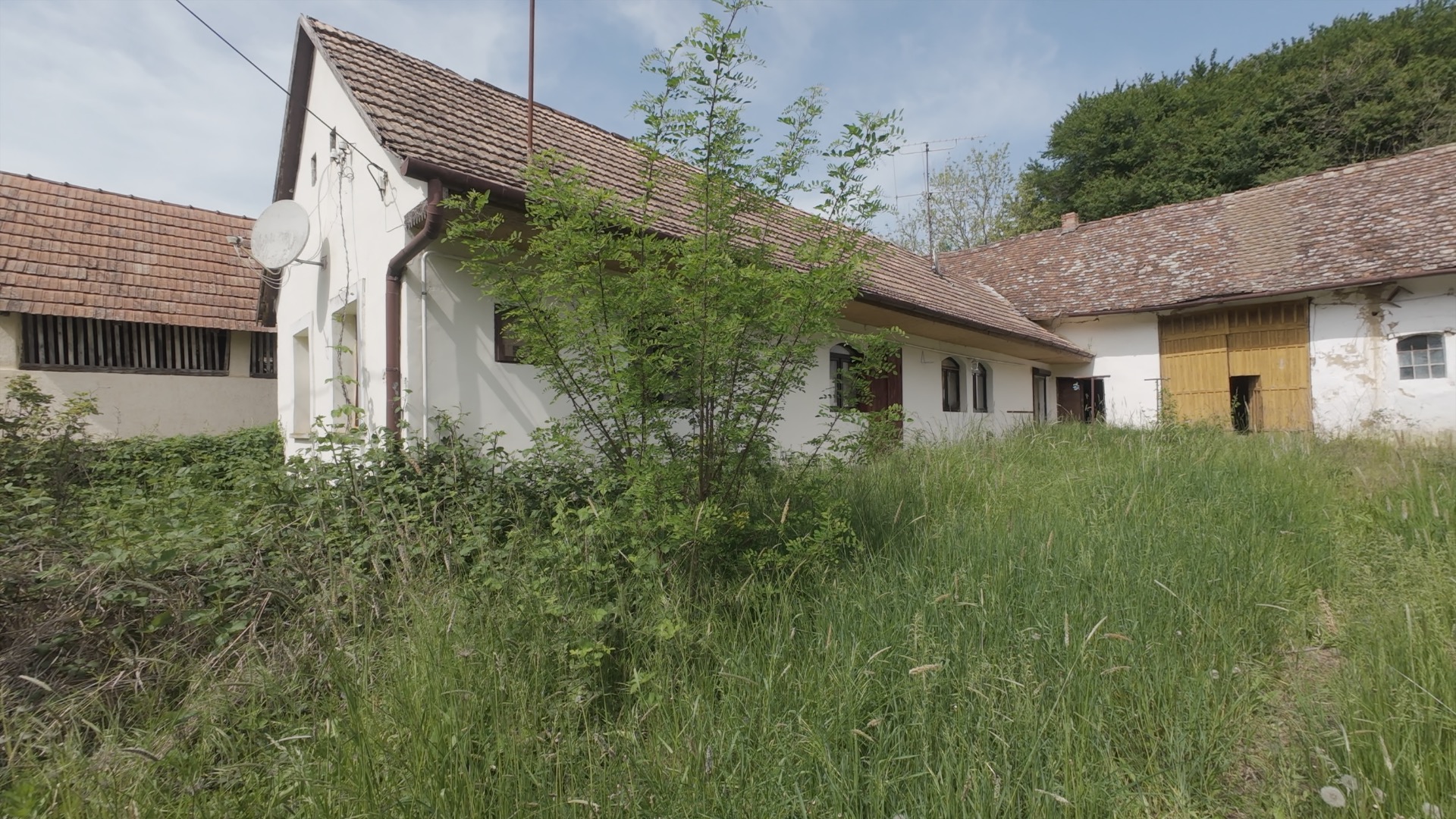Das Anwesen umfasst ein klassisches dreiseitiges Gehöft mit Wohnhaus, Stall, Garage und mehreren Wirtschaftsgebäuden. Teile der Fassade sowie Fenster wurden bereits renoviert, das Dach des Haupthauses ist weitgehend in gutem Zustand.